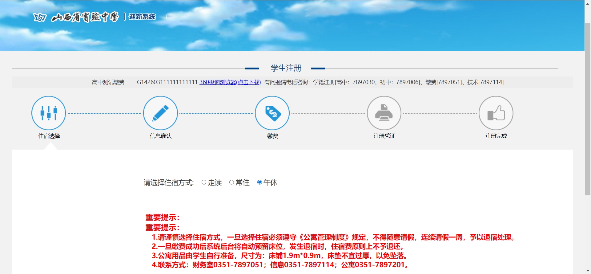 2.一旦缴费成功后系统后台将自动预留床位,发生退宿时,住宿费原则上不予退还。